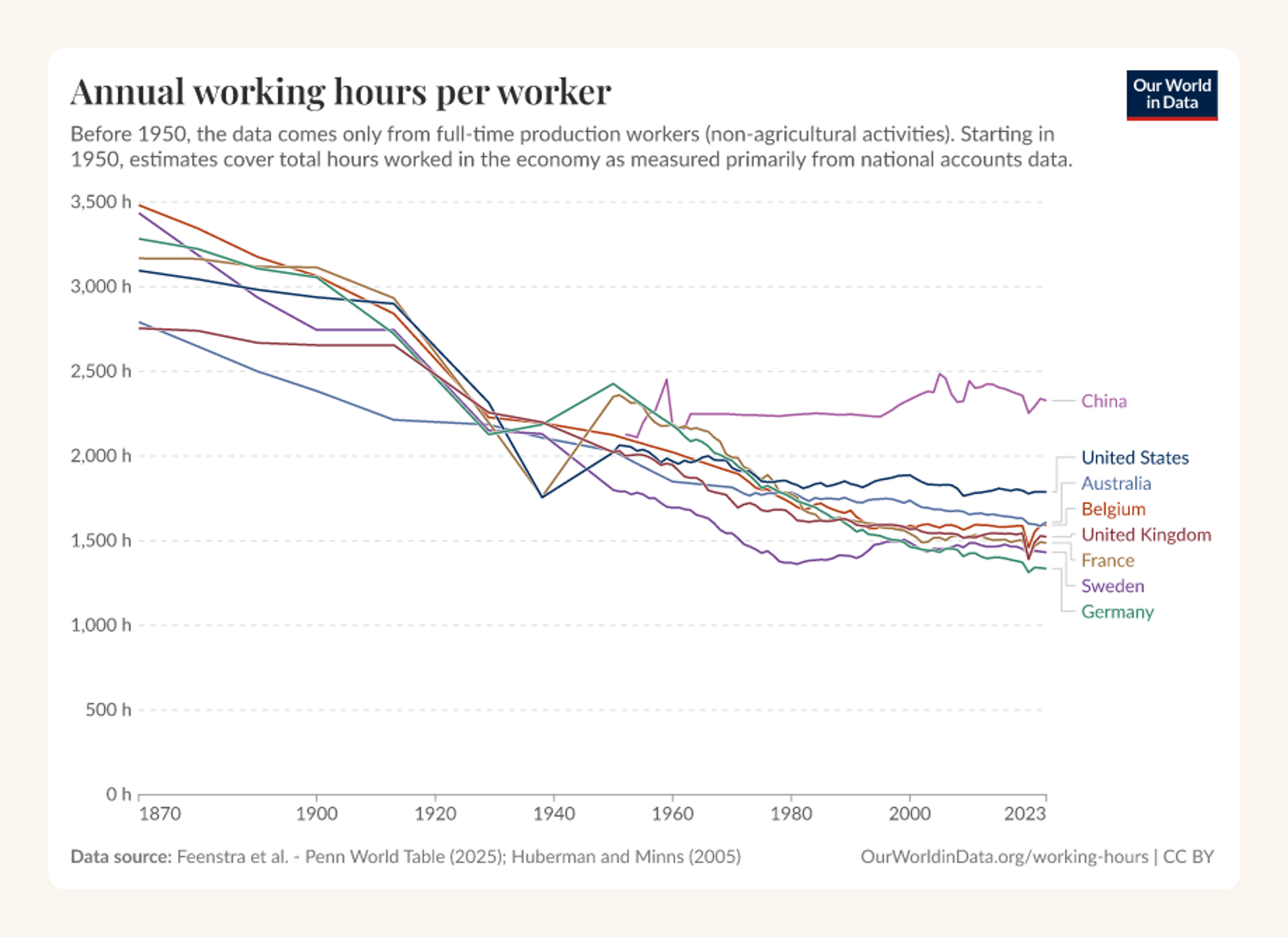 The long history of work in the United States points in one direction. Annual hours worked per person engaged fell from 3,096 in 1870 to 1,788.9 in 2023, about a 42% drop. BLS also notes that the average manufacturing workweek fell from 53 hours in 1900 to about 42 in 1999, while estimated unemployment was 5% in 1900 and 4.2% in 1999. A large decline in hours per worker can coexist with the absence of permanent mass unemployment.