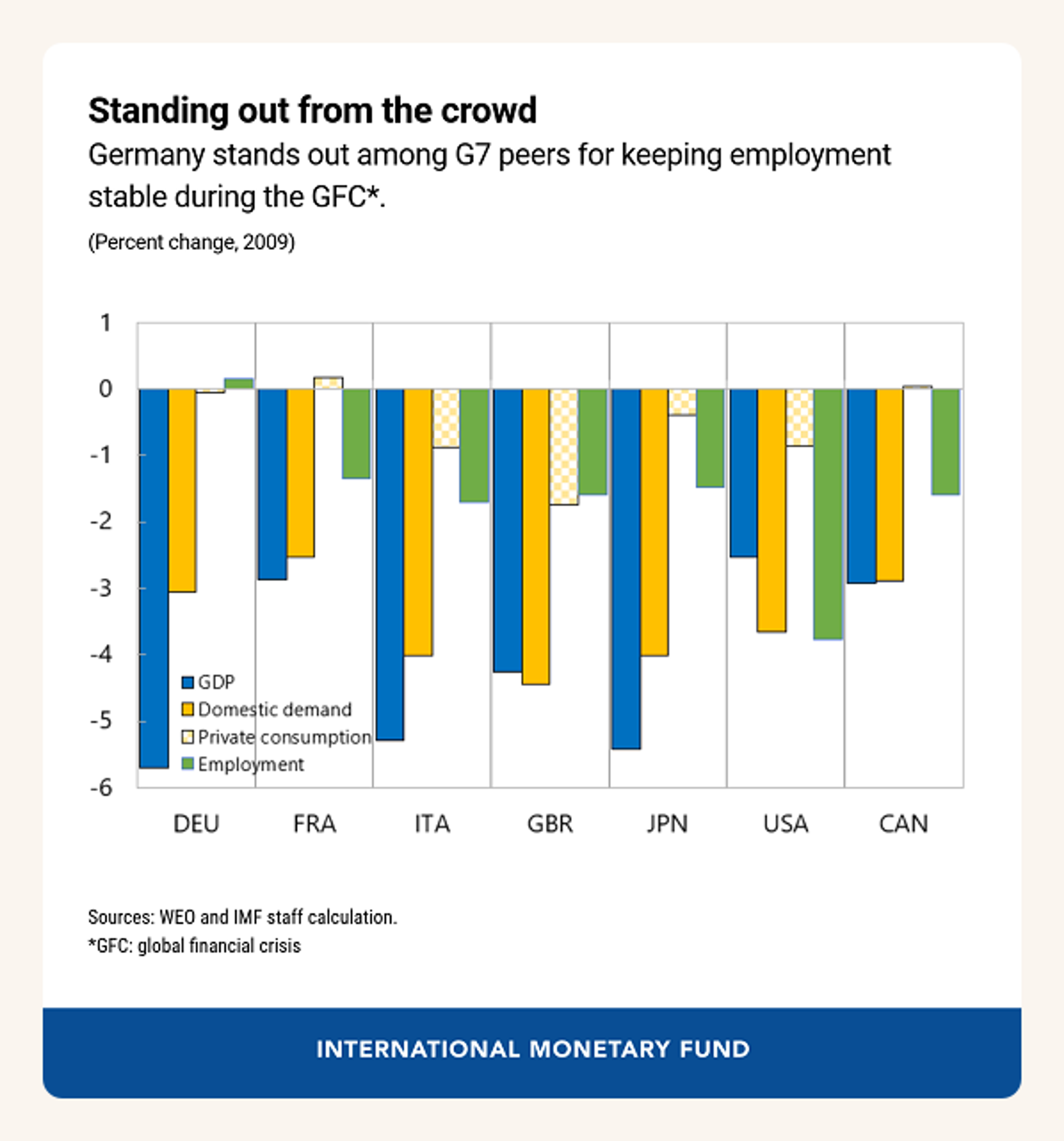 Even modern downturns offer a clean example. During the global financial crisis, Germany’s Kurzarbeit scheme subsidized firms to cut hours rather than cut people. The IMF says the program was instrumental in keeping employment stable; Germany was the only G7 country that did not experience an employment fall in 2009 despite GDP contracting by almost 6 percentage points, and about a third of the reduction in working time per employee came through Kurzarbeit. That is the 3-day-week logic in miniature: spread the hours shock, keep people attached to work, cushion incomes, and preserve the capacity to rebound. (IMF)